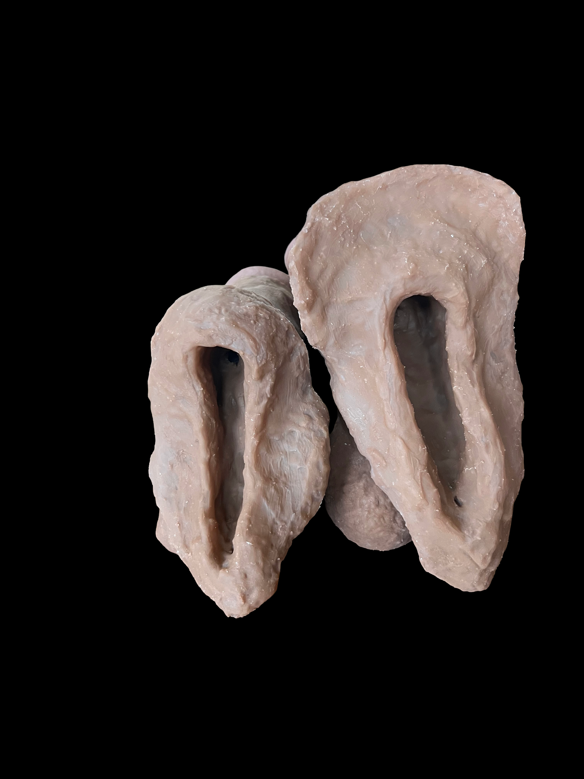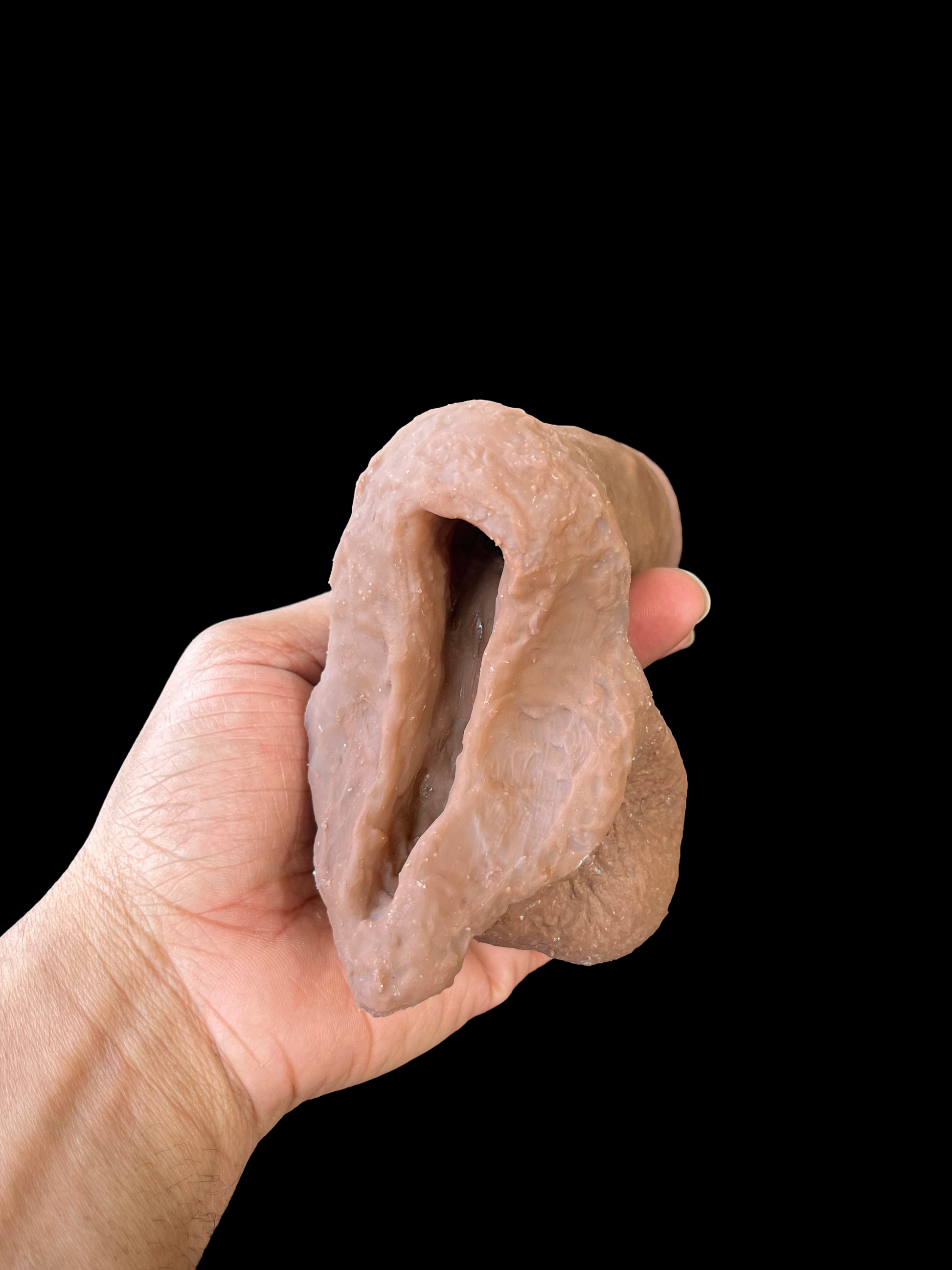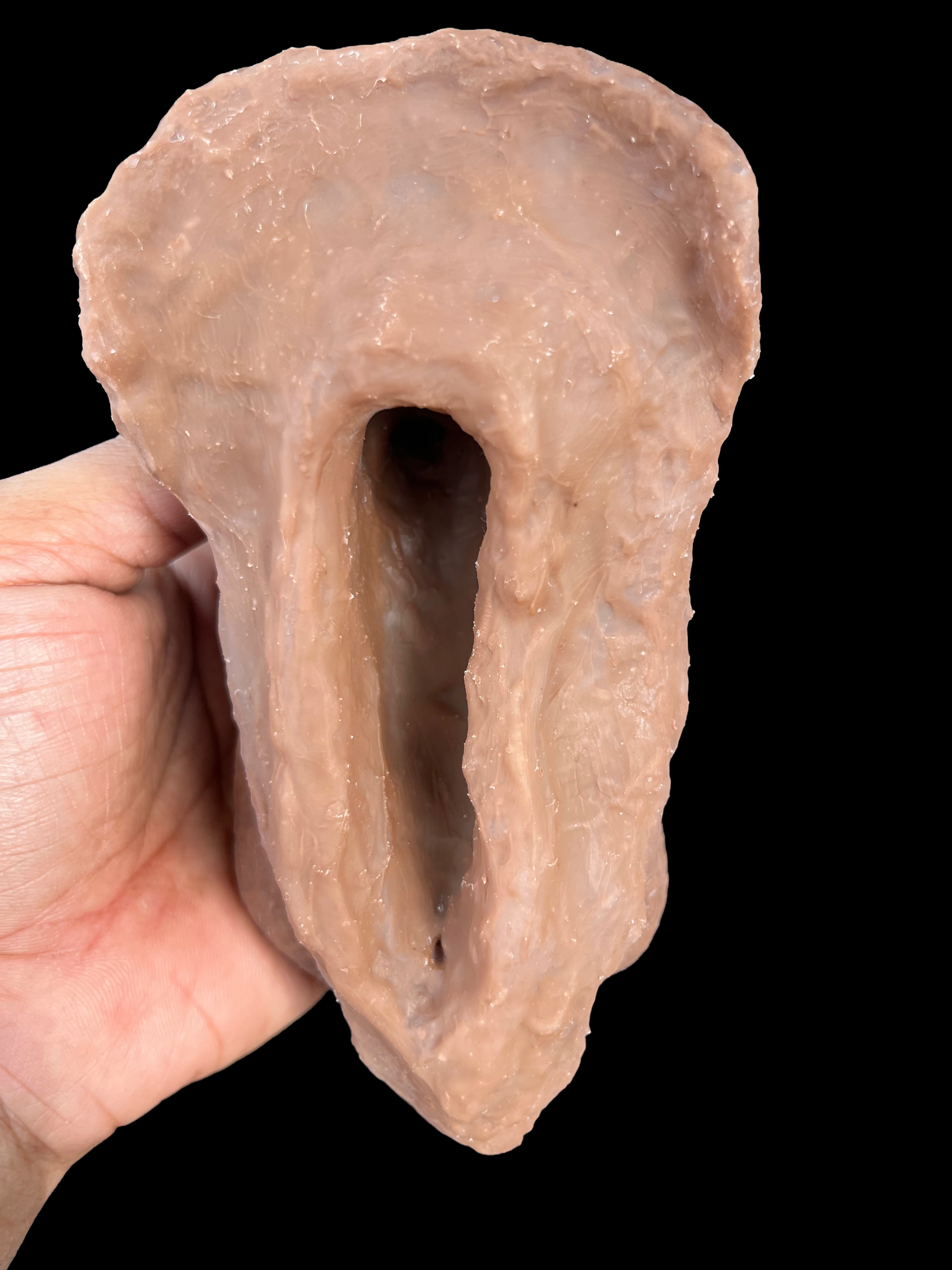 Semi-erect, dual-layer shaft (+ moving-skin layer) provides natural glide and pressure transfer without a rod. Suction sensation is passed to your T-phallus during oral and intercourse.